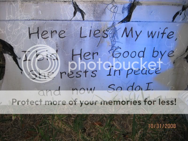Speaking of wives. This is a shot I took of one of the gravestones at a Halloween shin-dig we went to last night.