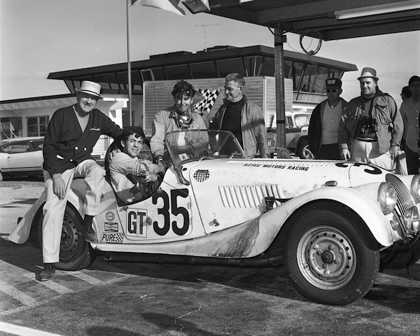 George was from Great Neck, NY and drove the car, a Morgan Plus 4, from NY to Florida and entered the race... He had no pit crew, just himself... He drove the entire race by himself but rules stated he had to get one hour of rest during every four hour stretch of the race... He re-fueled the car himself, changed tires etc. and got a nap or bite to eat each time he was required to rest... He even put a sign on the windshield that said "out to lunch." 65 cars started the race and George was the last car still running at the end finishing in 30th position... 335 laps behind the winner!! He then cleaned the car up., changed the oil and drove it back to NY!!!!