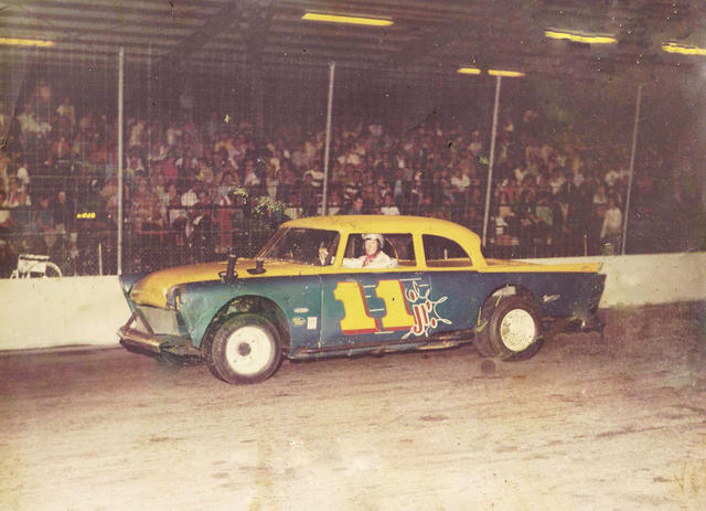 Got these photos from Harry Campbell for the website... This is the car Billy Campbell drove in the Early Model (6 cyl) class... The first is Billy in victory lane with Starter Johnny Hicks... Photo two is a great action shot and the third one is of Dave Scarbrough driving the car...