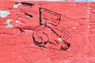 A picture of a sprint car painted on the wall by a sprint car driver. ( I think the sprint cars are ready for their show on the high banks)