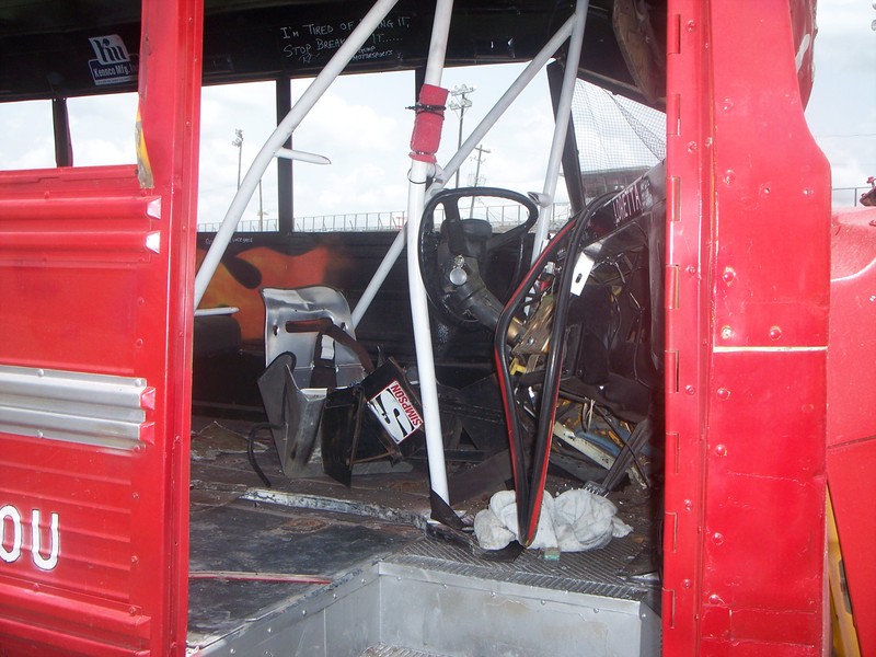 As some of you know, Greg Roberts was in a terrible School Bus Figure 8 accident Saturday night at DSS. The family needs our help. Greg will be out of work for at least 3 months with a broken leg, broken arm, and other injuries. He has had one surgery and is getting ready for surgery number 2 on Wednesday. Alot of DSS regulars have now started a collection to help them with bills and other finances. If anyone can help this family out, it would be greatly appreciated. I have a phone number of Cooney, 813-323-2951. Or you can mail any donations to Greg himself. He will be in Bayfront Hospital in St. Pete for a week at least.