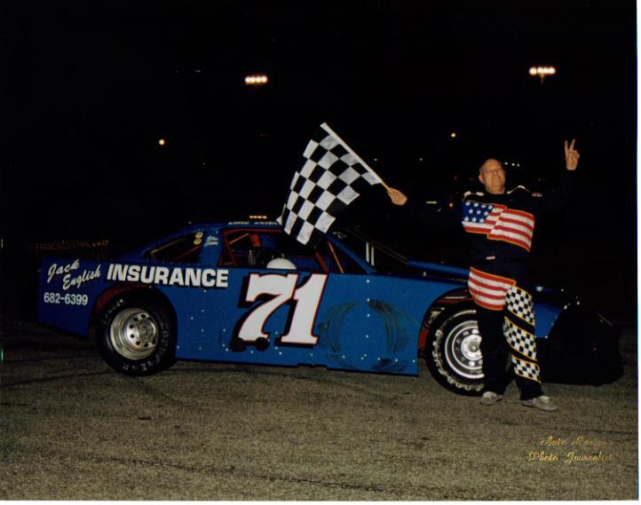 The late Tony Jankowiak, pictured with his young son Andy. Unfortunately, Tony was killed during that stretch of the mid-'80's when we also lost Richie Evans, Charlie Jarzombek, Corky Cookman, Don Pratt, Tommy Druar and about 5 others... all in Nascar type Modifieds. Soon after, the rules were changed to make the cars much more "crushable" so that the impact disipated throughout the car without the drivers body taking so much impact.