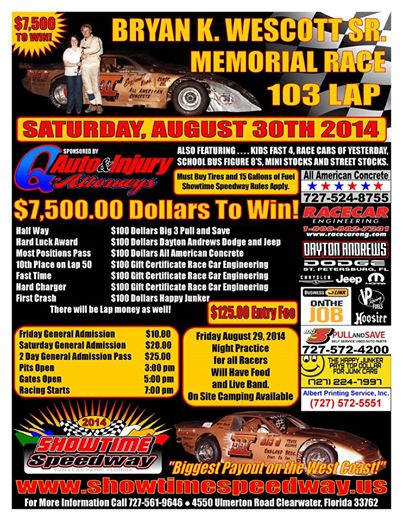 Aug 30 Bryan Wescott Memorial - Showtime Speedway
