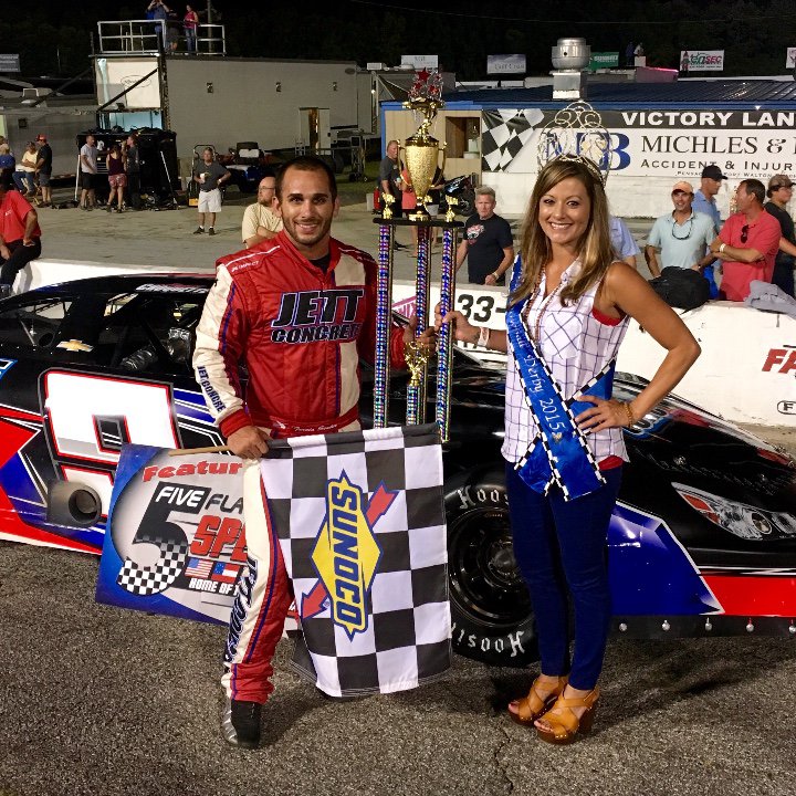 Jeff Choquette won both 50-lap Allen Turner Pro Late Model features at Five Flags Speedway last night, again driving for Kurt Jett... 24 cars showed with Anthony Cataldi of Umatilla the fastest in hot laps... Cataldi finished 8th in both races though... Also ran Pro Trucks (14), Bombers (9) and Sportsman (7) - not really very good car counts... Choquette & Jett are becoming a force!