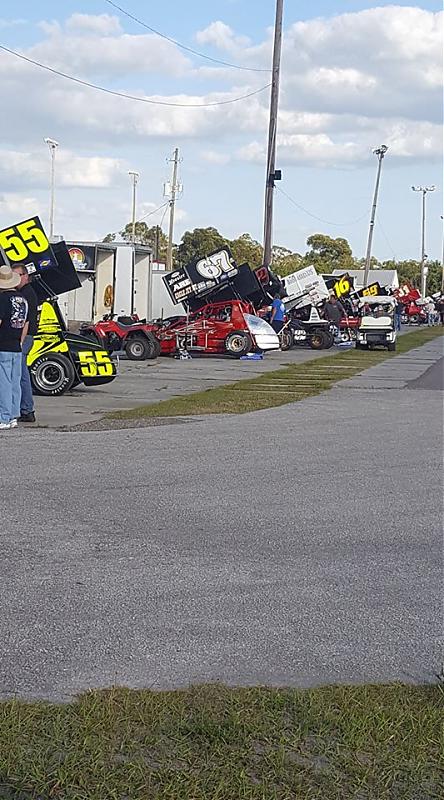cars were lined up and ready to come race at Desoto Speedway