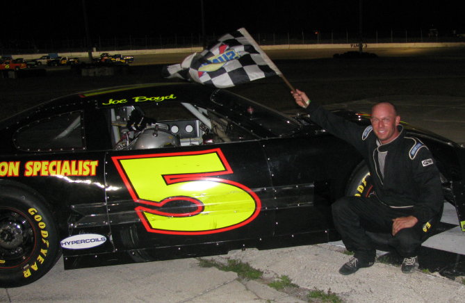 Joe worked his way to the front and stayed there winning an action packed late model race!. Steve Dorer and Joe Boyd followed but i forgot who was 2nd or 3rd....lol tired! was a really good race. the place was packed and all classes had good counts except for the TT....